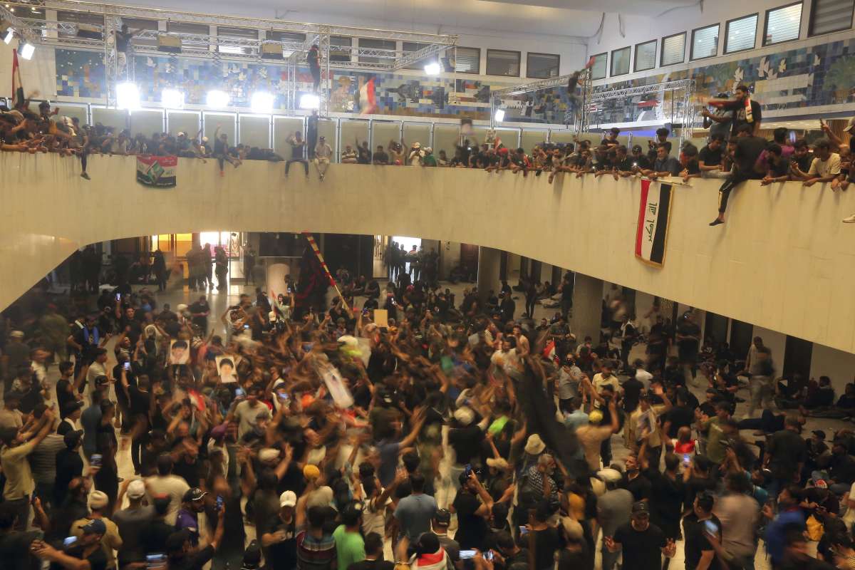 Iraq's caretaker Prime Minister Mustafa al-Kadhimi directed security forces to protect demonstrators and asked them to keep their protest peaceful, according to a statement. Inside the parliament building, the defences of the security forces grew less intense and many were seen sitting and conversing with demonstrators.