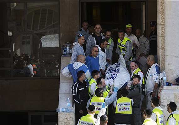 “Innocent people who had come to worship died in the sanctuary of a synagogue,” Kerry said, his voice quavering. “They were hatcheted, hacked and murdered in that holy place in an act of pure terror and senseless brutality and murder. I call on Palestinians at every single level of leadership to condemn this in the most powerful terms.