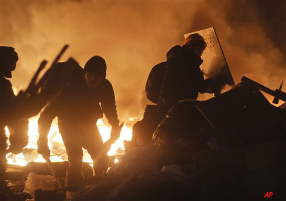 Kiev: Amid cries of ‘‘Glory to Ukraine!'' and with flaming tires lighting up the night sky, thousands of riot police armed with stun grenades and water cannons attacked the sprawling protest camp in the center of Kiev on Tuesday, following a day of street battles that left 18 people dead and hundreds injured.