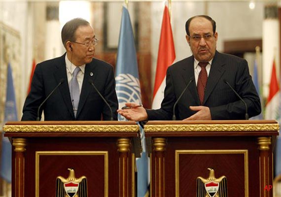 Monday's attack comes as the visiting U.N. chief Ban Ki-moon called on Iraq's leaders to “address the root causes” of a surge in bloodshed as al-Qaida militants battle government forces and allied tribal leaders for control of a volatile mainly Sunni province west of the capital.