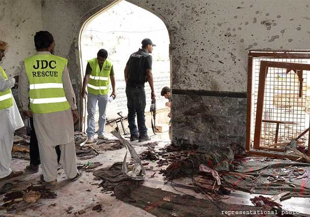 At least three explosions and gunfire was heard. So far, 20 people have been killed and over 50 others have been injured, hospital sources said. Three suicide bombers entered the mosque carrying grenades and Kalashnikovs. However, only one of them was able to denonate the bomb. Another suicide bomber was killed by security forces while the third one was arrested in an injured condition, Dawn.com quoted SSP operations Mian Saeed as saying.