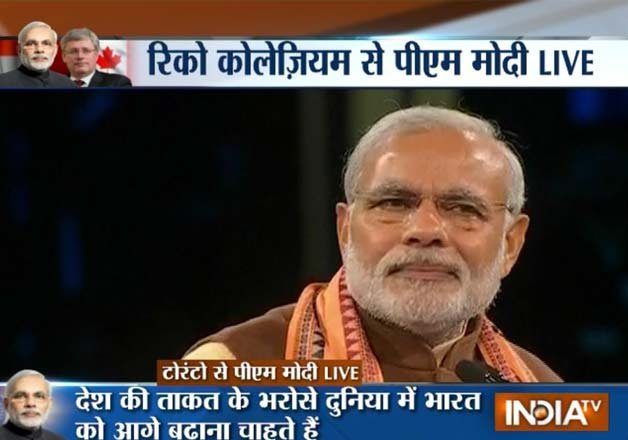 New Delhi: Prime Minister Narendra Modi addressed the Indian Diaspora in Toronto's Ricoh Coliseum today. This is the last leg of Modi's three nation tour, which included France and Germany.