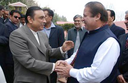 Jammat-e-Islami chief Syed Munawar Hasan on Sunday described PML-N chief Mian Nawaz Sharif and President Asif Ali Zardari as two sides of the same counterfeit coin (khotay sikkey).