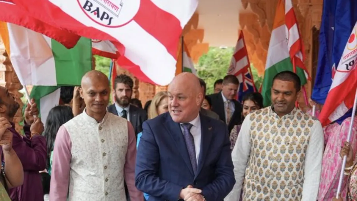 New Zealand Prime Minister Christopher Luxon joined the Annakut and Hindu New Year festivities at BAPS Mandir in Wellington, celebrating devotion, gratitude, and community spirit. He was accompanied by several other delegates and community guests.