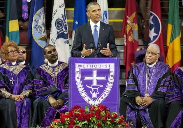The president came to eulogize the Rev Clementa Pinckney, a state senator and pastor of Emanuel, a church founded by the leader of a failed slave revolt and burned to the ground by angry whites in 1822. After the American Civil War, the church led efforts to expand equal rights in the South, hosting civil rights leader Martin Luther King Jr. during campaigns in South Carolina.