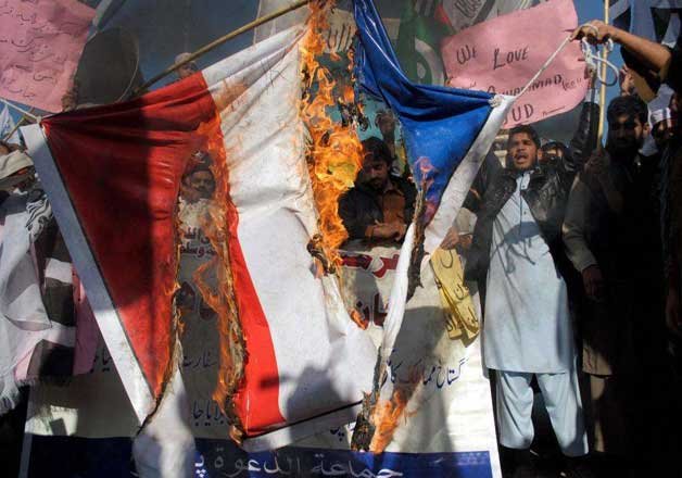 Karachi: Pakistan today beefed up security outside all foreign consulates here amid calls by rightwing groups for bigger demonstrations on Friday, a day after four persons were injured in violent protests over the publication of an "un-Islamic" cartoon by a French satirical weekly.