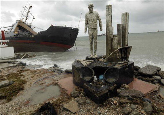 The ships include several massive cargo vessels stranded off the city of Colon, near the Caribbean side of the Panama Canal.