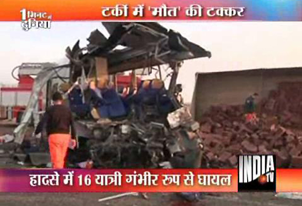 Diyarbakir, Turkey, Dec 22: A passenger bus collided with a truck on a single lane road in southeast Turkey on Wednesday, killing 25 people, an official said.