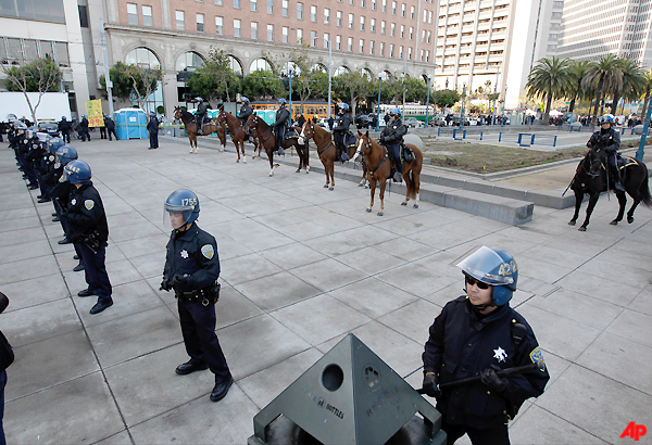 Jack Martin of San Francisco said he was trying to leave the plaza when he was zip-tied, taken to a police station, cited and released. Officers trashed his tent and personal belongings, he said.
