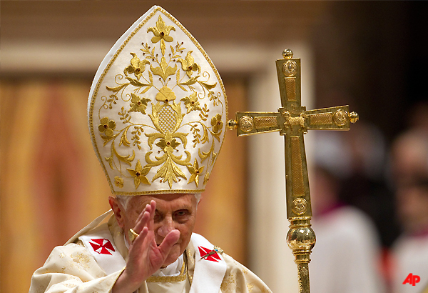 Benedict presided over the service in a packed St. Peter's Basilica, at the start of an intense two weeks of Christmas-related public appearances that will test the 84-year-old pontiff's stamina amid signs that fatigue is starting to slow him down.