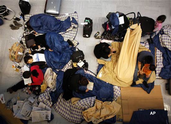 The Tokyo suburb of Yokohama offered blankets for people who wanted to sleep at the community's main concert hall."There has never been a big earthquake like this, when all the railways stopped and so this is a first for us," Yokohama Arena official Hideharu Terada said. "People are trickling in. They are all calm."AP