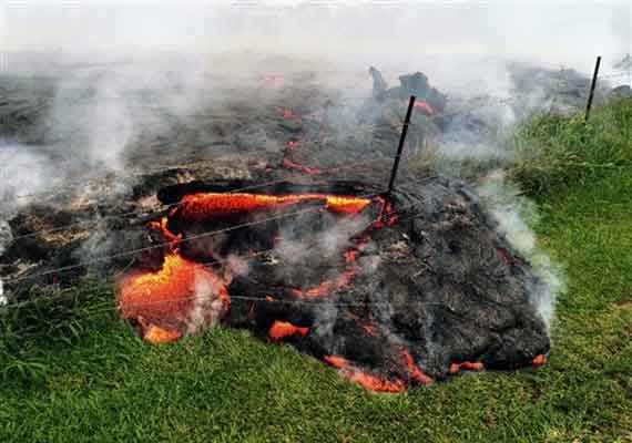 Honolulu: Lava that has entered a rural Hawaii town has been described as a disaster in slow motion. After months of creeping through uninhabited areas of the Big Island, it reached Pahoa this week, crossing a residential street, burning down a garden shed and inching toward homes and a main road that goes through downtown.