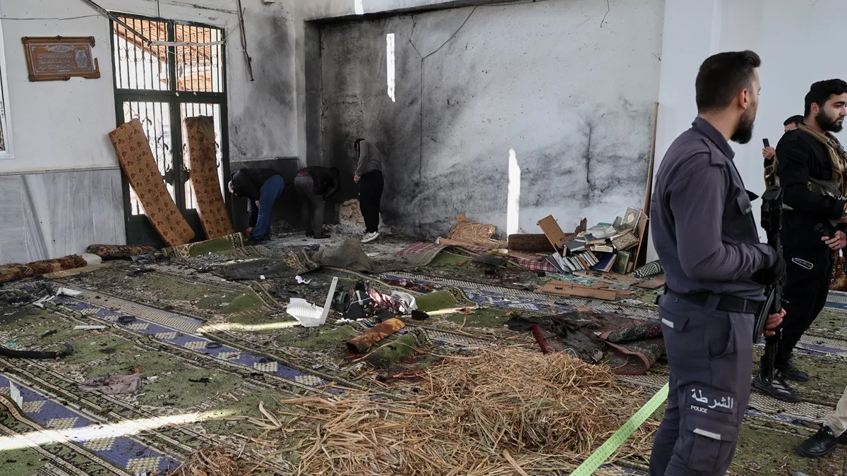 SANA published photos from inside the mosque, one of which showed a hole in a wall. Black smoke covered part of the mosque, with carpets and books scattered nearby.