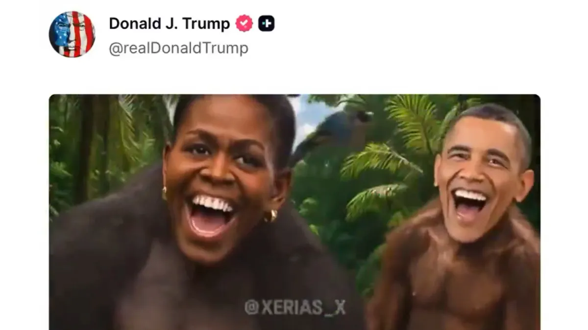 US President Donald Trump is facing widespread backlash after posting a video on social media that depicted former President Barack Obama and former First Lady Michelle Obama as apes. The one minute video, shared on Trump’s Truth Social platform on Thursday, repeated false claims that ballot counting firm Dominion Voting Systems helped steal the 2020 election from him.