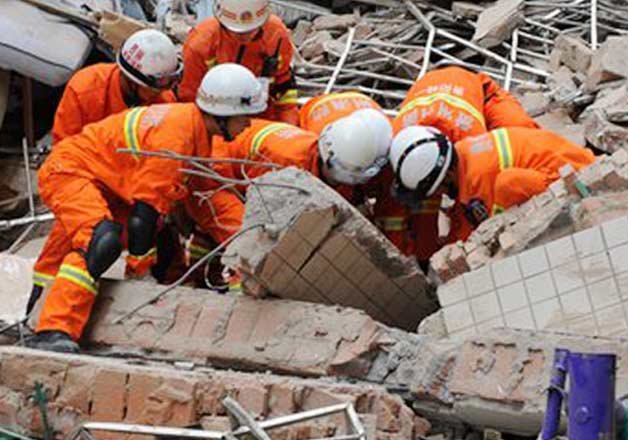 The government officials said in a statement that heavy rainfall led to the collapse of the building with 35 households and that people in the surrounding area had been evacuated. More than 100 rescuers were at the scene and no casualties had been found by mid-afternoon, it said.