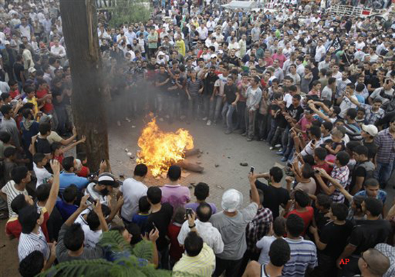 “Our souls, our blood we sacrifice for you, Libya!”Syrian protesters chanted today. Others held signs linking Assad's fate to those of other deposed Arab leaders. Tunisia's Zine El Abidine Ben Ali has been driven into exile, and Egypt's Hosni Mubarak is in jail and facing charges of complicity in the deaths of more than 800 protesters in his country's uprising.