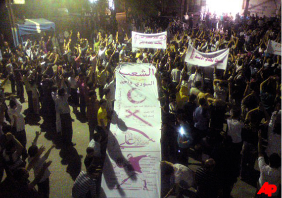 The protesters also called for international monitors, although most opposition groups reject the idea of foreign military intervention.