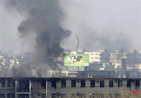 Kabul, Jan 21: A brazen suicide attack mounted Monday morning by heavily armed Taliban rebels who seized the four-storeyed traffic police headquarters here ended after a fierce gun battle that left at least three police personnel dead and 22 injured. All attackers were also killed.
