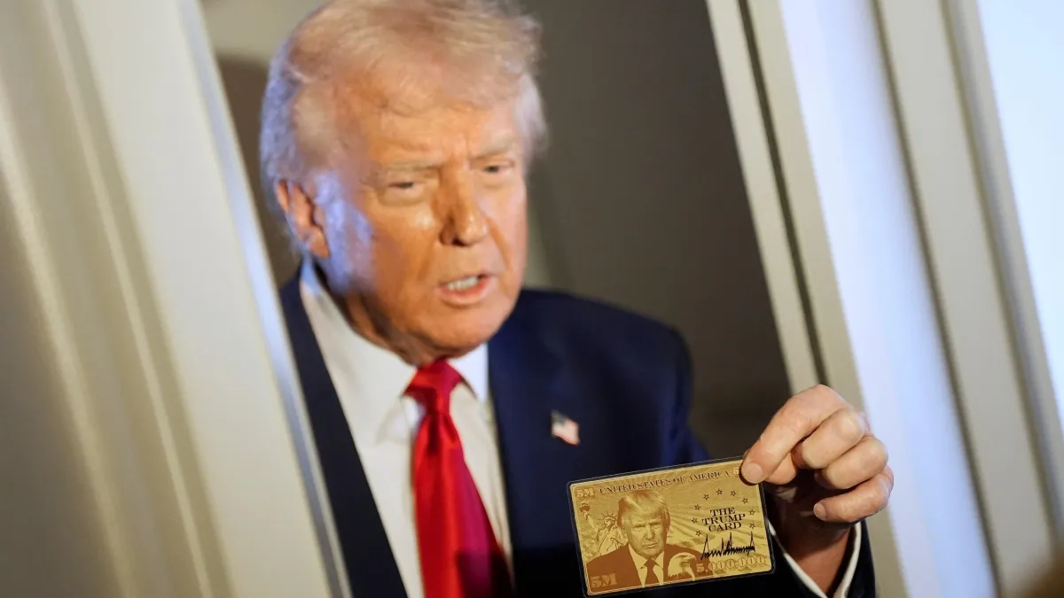 On Air Force One, he told reporters, "For $5 million, this could be yours." "That was the first of the cards. You know what that card is"? It’s the gold card – the Trump card."