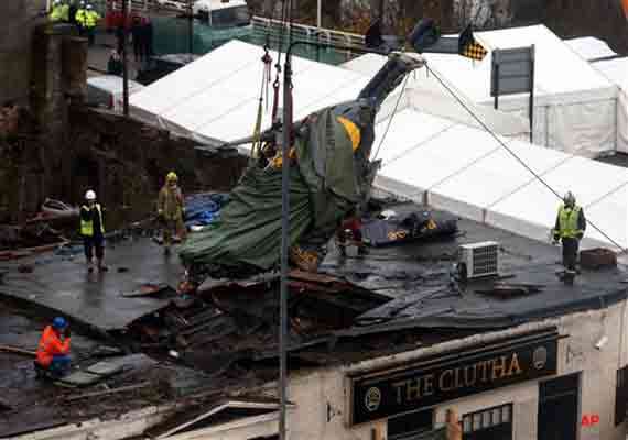 Officials on Monday removed the wreckage of the helicopter from the roof of The Clutha pub, where it came down Friday night.