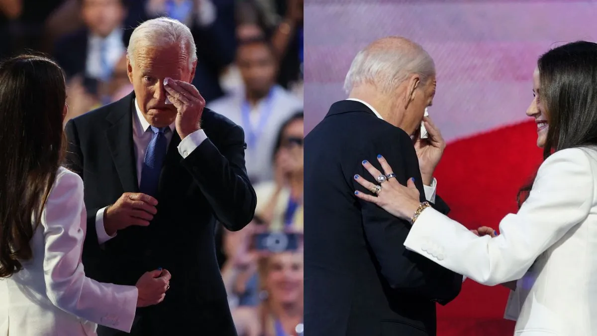 Wiping away multiple tears after being introduced by his daughter Ashley and waving to a crowd that gave him an extended standing ovation, a smiling Biden said: "I love you."
