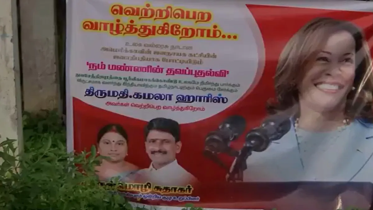 At the temple, Harris' name was engraved on a stone that lists public donations, along with that of her grandfather. Outside, Arulmozhi Sudhakar, a local politician, erected a banner, wishing Harris, "the daughter of the land" success in the election.