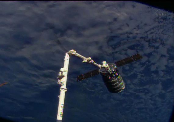 The unmanned Cygnus spacecraft was grappled by a robotic arm operated by astronauts inside the space station at about 7 a.m. EDT (1100 GMT), Xinhua reported. Cygnus will remain attached to the ISS for 30 days before departing with disposal cargo on board.