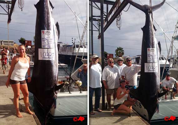 Honolulu, Aug 24: A woman tournament fishing in Hawaii waters fought a 12-foot marlin more than four hours before getting it on her team's boat and weighing it at more than a half-ton - a would-be world record.