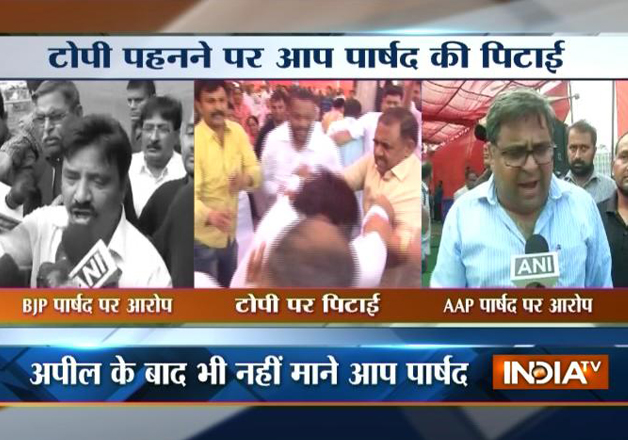 Initially, the BJP councillors objected to the AAP member wearing the party cap at the session. They also asked Rakesh Kumar not to wear party cap at the event but he refused to listen them.