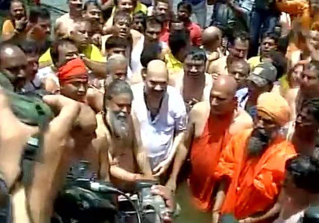 Ujjain: BJP president Amit Shah today took a holy dip with Dalit Sadhus in Kshipra river at the ongoing 'Singhast Kumbh' in Ujjain, a move that many see as BJP's attempt to woo Dalits.