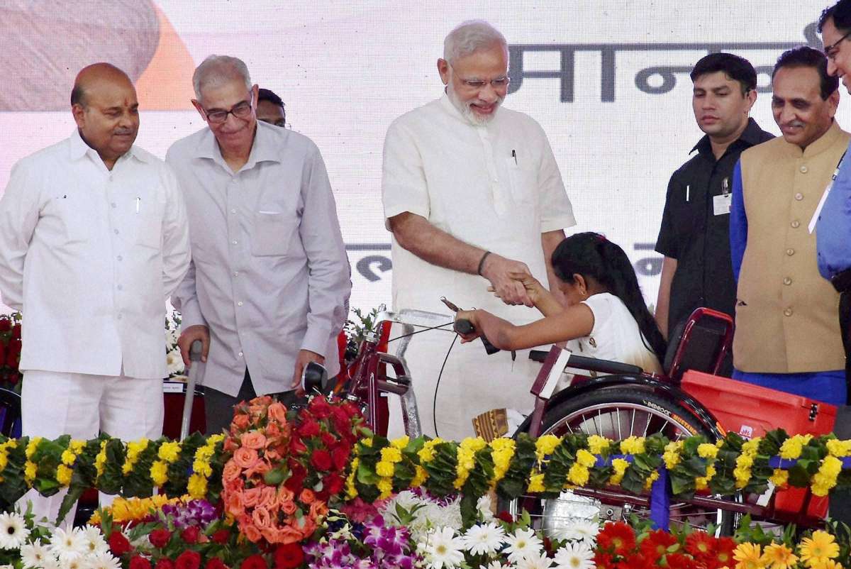 Modi, who turned 66 , was speaking at the Social Empowerment Camp organised here by the Ministry of Social Justice and Empowerment. The event was organised to distribute financial aide and assisting devices to 'Divyang' (differently-abled) citizens to mark the Prime Minister's birthday. Modi expressed happiness over being the first Prime Minister to attend such camp and thanked the ministers for inviting him.