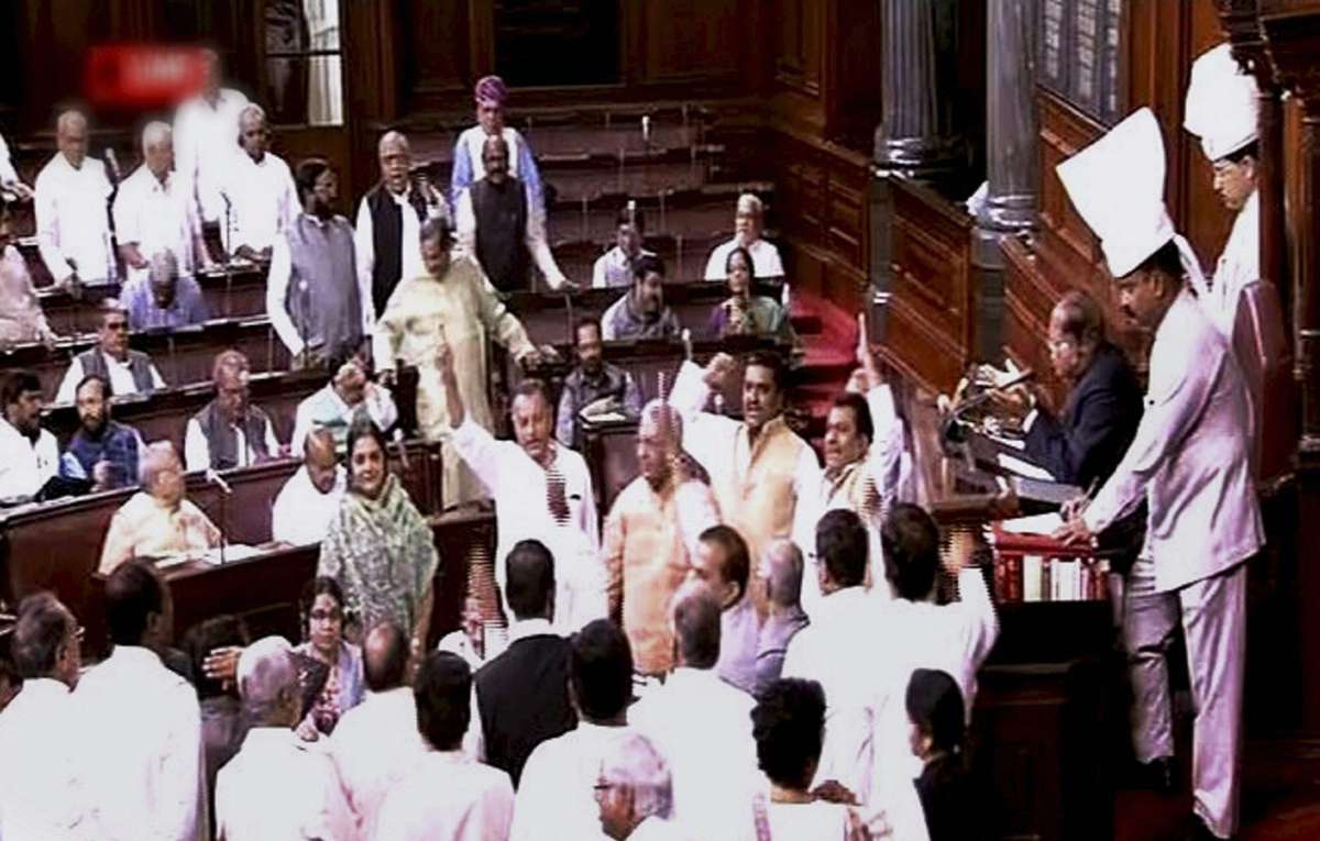 In scenes that drew sharp resemblance to the uproar seen both inside and outside Parliament over the government’s demonetisation decision, opposition parties today disrupted proceedings in the Rajya Sabha over alleged tampering of electronic voting machines (EVMs) to favour the ruling Bharatiya Janata Party (BJP).