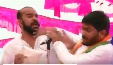 Hardik Patel (25) was addressing a gathering when suddenly a person climbed the state and slapped him with full force. After hitting him, the person also started arguing with the youth leader.