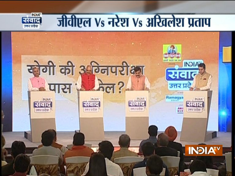 India TV Samvaad is Mega Conclave on one year of Yogi Adityanath Government in UP. India TV chairman & Editor-in-Chief Rajat Sharma along with his team of leading India TV anchors are grilling the political big-wheelers at the mega conclave.