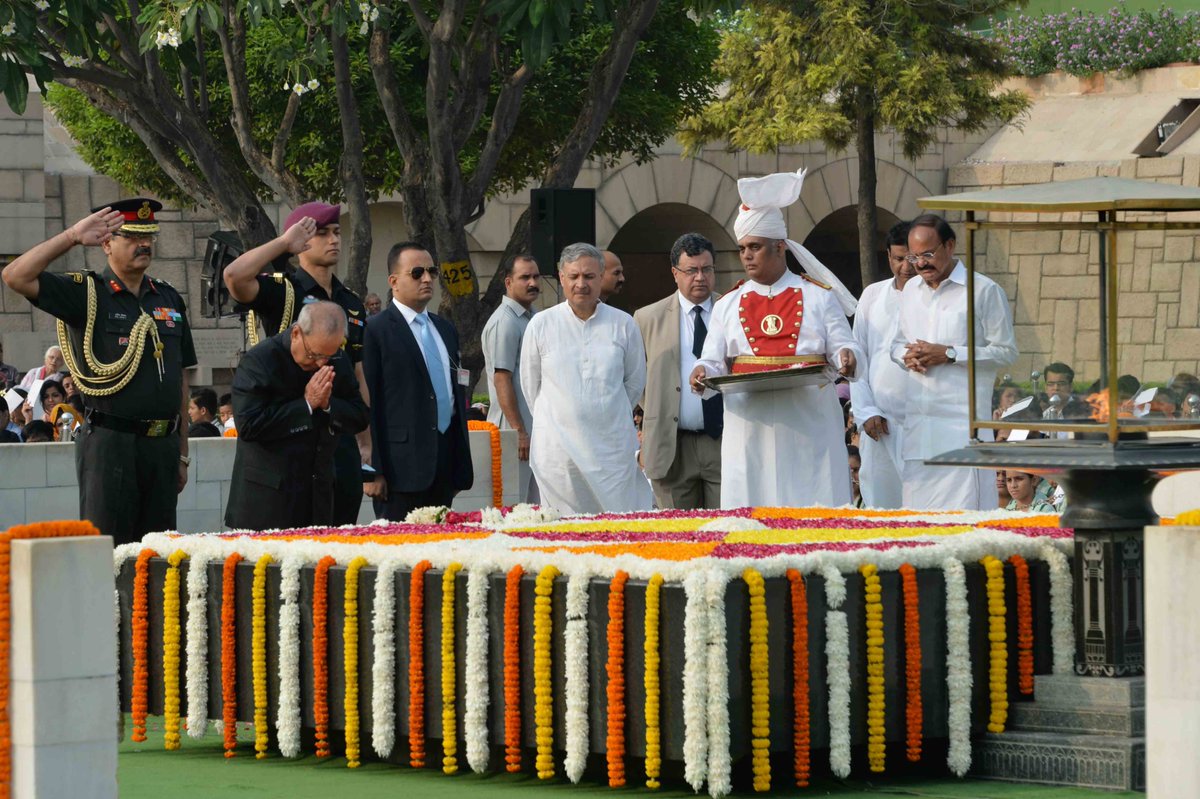 Vice President Hamid Ansari, former Prime Minister Manmohan Singh and senior BJP leader L K Advani also paid tributes to the Father of the Nation.