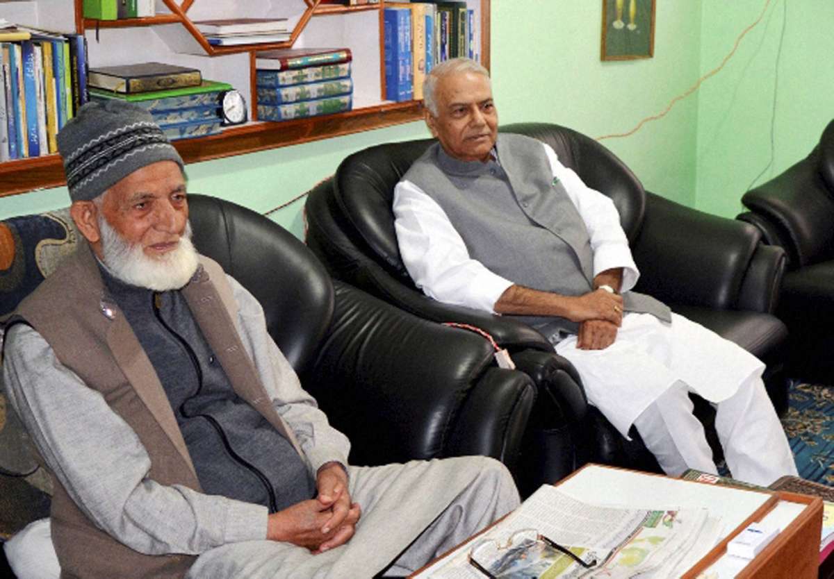 A five-member civil society delegation led by the former Union minister today met Geelani, who heads the hard-line faction of separatist Hurriyat Conference, amid continuing volatile situation in the Valley.