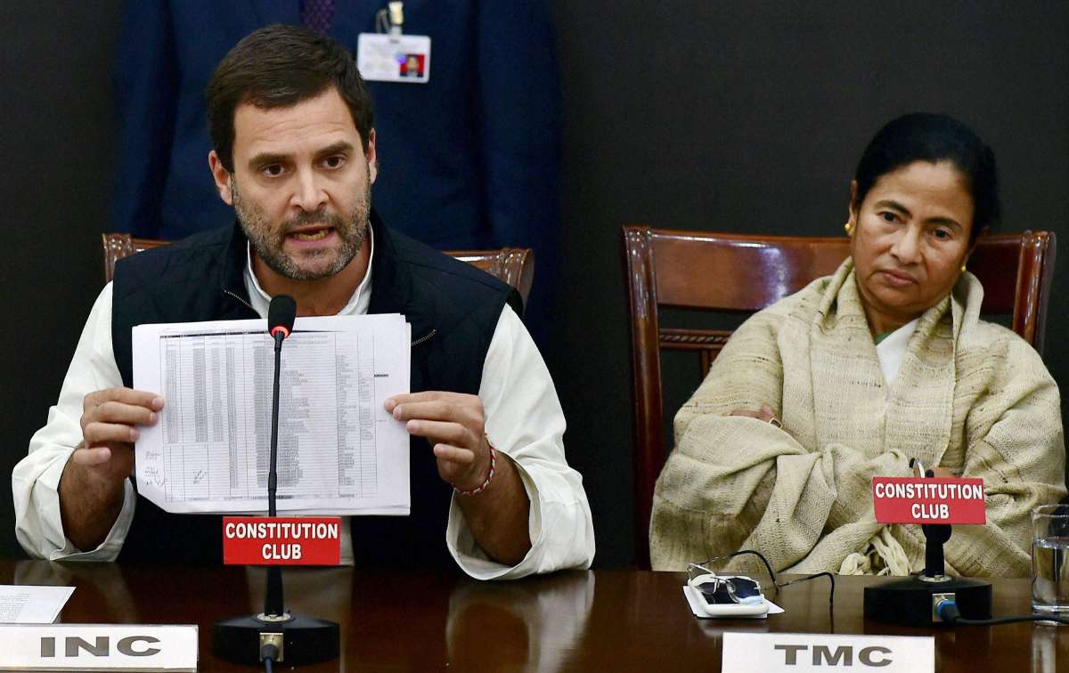 Congress Vice-President Rahul Gandhi and Trinamool Congress supremo Mamata Banerjee lead the charge as they attacked PM Modi while addressing to the media at the Constitution Club in New Delhi. Other opposition parties that marked their presence were the Rashtriya Janata Dal, the DMK and Jharkhand Mukti Morcha.