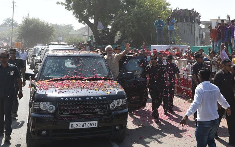 There were chants of "Modi-Modi" and flowers were showered on him at several places along the route of the roadshow.