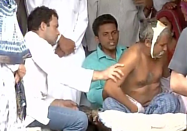 Una (Gujarat): Congress vice president Rahul Gandhi today met the family members of the Dalit family who were brutally thrashed by Gau Rakshak workers over allegations of skinning a dead cow in Una town of Gir-Somnath district in Gujarat.