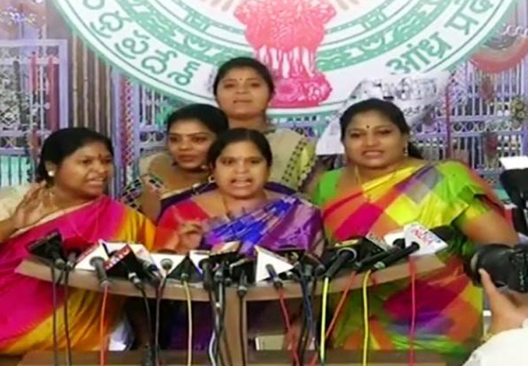 According to media reports, trouble broke out when YSR Congress member G. Eshwari was addressing mediapersons over the increasing atrocities on women in the state and TDP's V. Anitha tried to stop her.