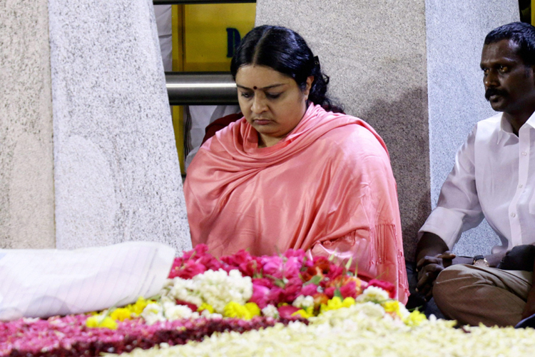 In an unexpected move, she paid homage at Jayalalithaa's memorial at the Marina Beach here at around 10 PM yesterday and sat there in meditation for sometime.