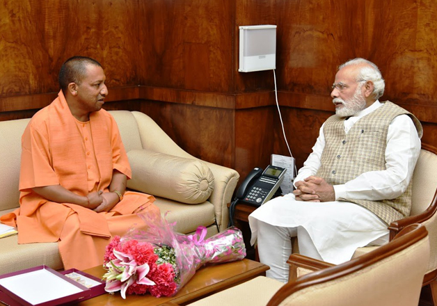 Newly elected Uttar Pradesh Chief Minister Yogi Adityanath today met several central leaders in New Delhi including Prime Minister Narendra Modi and discussed several issues related to the state.
