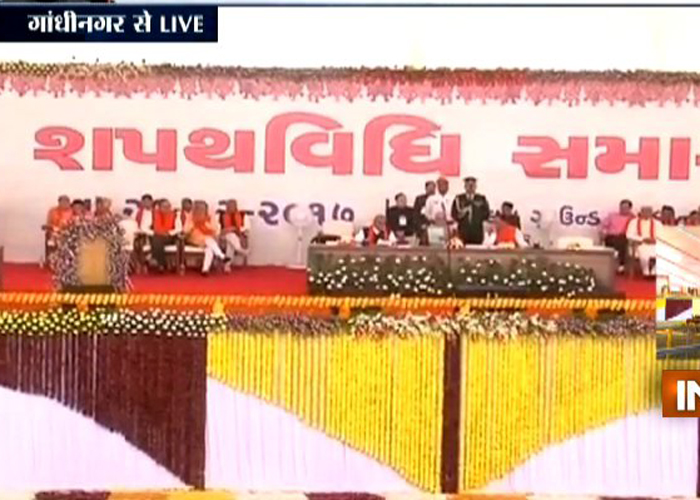 PM Narendra Modi, BJP president Amit Shah and chief ministers of various BJP-ruled states attended the ceremony. The chief ministers of other BJP-ruled states - Uttar Pradesh CM Yogi Adityanath, Rajasthan CM Vasundhara Raje Scindia and Chhattisgarh CM Raman Singh, along with former Gujarat chief ministers - Keshubhai Patel and Shankersinh Vaghela, were also present to grace the occasion.