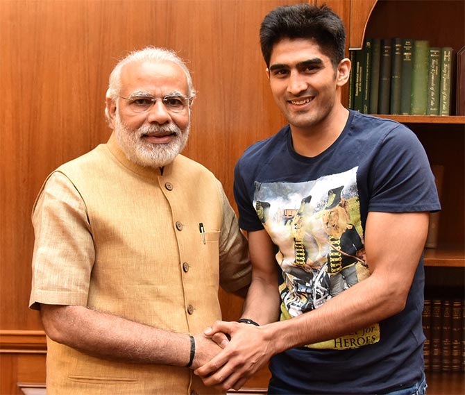 New Delhi: He is no longer a part the amateur boxing circuit but concerned about the shambolic state of its administration in India, professional star Vijender Singh today took up the issue with Prime Minister Narendra Modi in a meeting here.