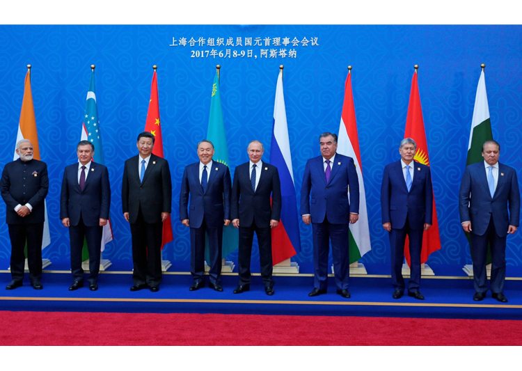 Prime Minister Narendra Modi exchanged greetings with his Pakistani counterpart in the leaders' lounge at a reception at Astana Opera in the Kazakh capital organised to welcome leaders participating in the Shanghai Cooperation Organisation (SCO) Summit.