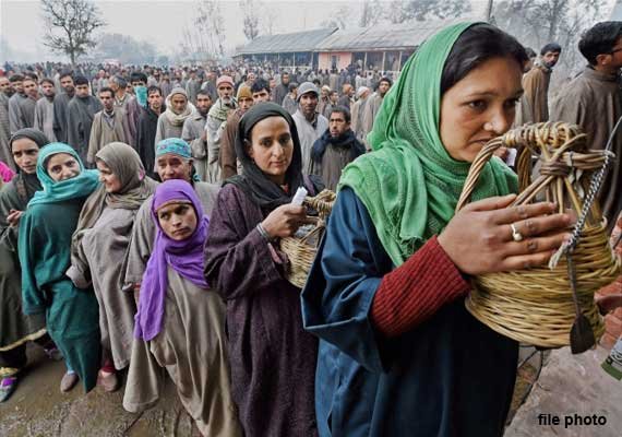 Srinagar: Defying separatists' boycott call and chilly weather, voters came out in good numbers today to record a 49 per cent turnout in the fourth and penultimate phase of Jammu and Kashmir Assembly elections that involved 18 seats.