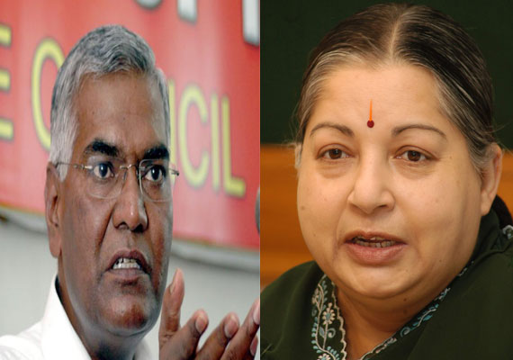 Addressing the press at her Poes Garden residence here along with CPI leaders A B Bardhan and Sudhakar Reddy, AIADMK chief and Tamil Nadu Chief Minister Jayalalithaa said, “AIADMK and CPI have decided to enter into an alliance to face the upcoming Lok Sabha elections together.”