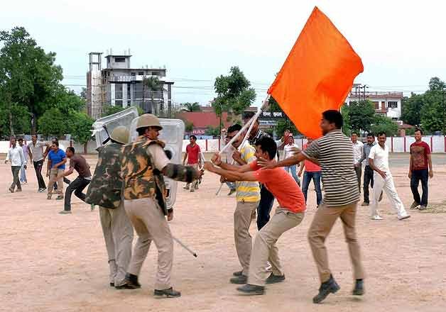 BJP said the state police deliberately used saffron flags to "divert" people's attention from the flak it is facing over its handling of law and order problem.