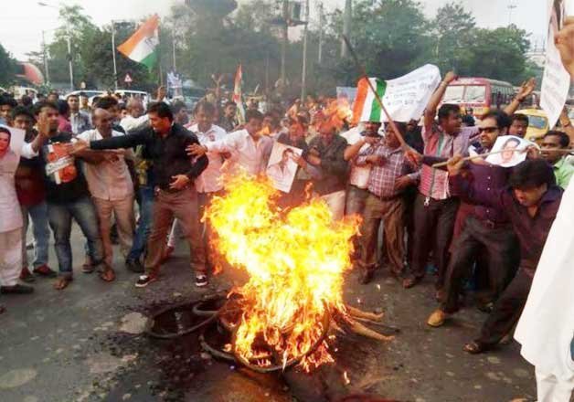 Lucknow: Congress leaders and workers today burnt an effigy of Prime Minister Narendra Modi and took out a protest march here against the NDA government, accusing it of falsely implicating leaders of opposition parties including Sonia Gandhi and Rahul Gandhi in the National Herald case.