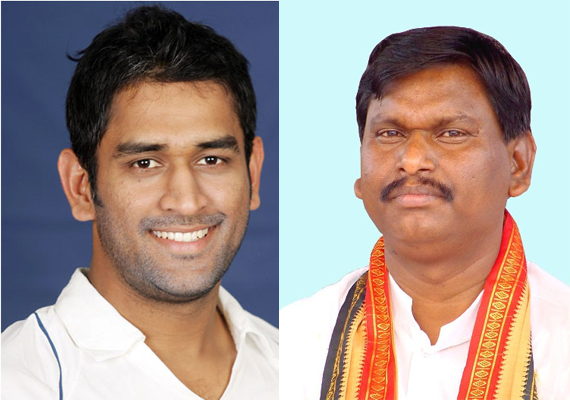 Ranchi, June 13: Team India Captain Mahendra Singh Dhoni today met Jharkhand Chief Minister Arjun Munda who is recovering from injuries he had suffered in a helicopter accident last month.